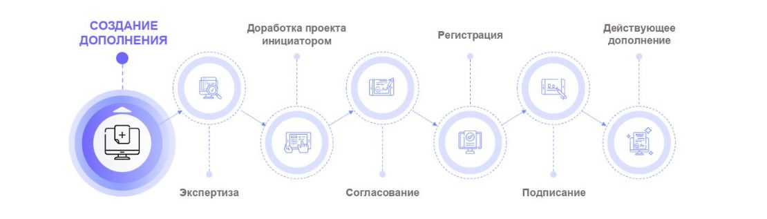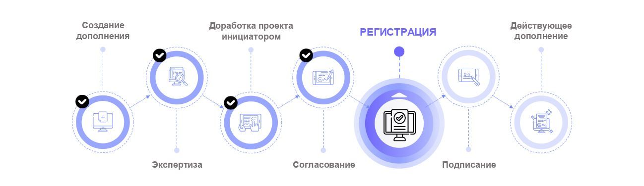 Логика регистрации дополнений полностью повторяет уже описанную логику договоров.