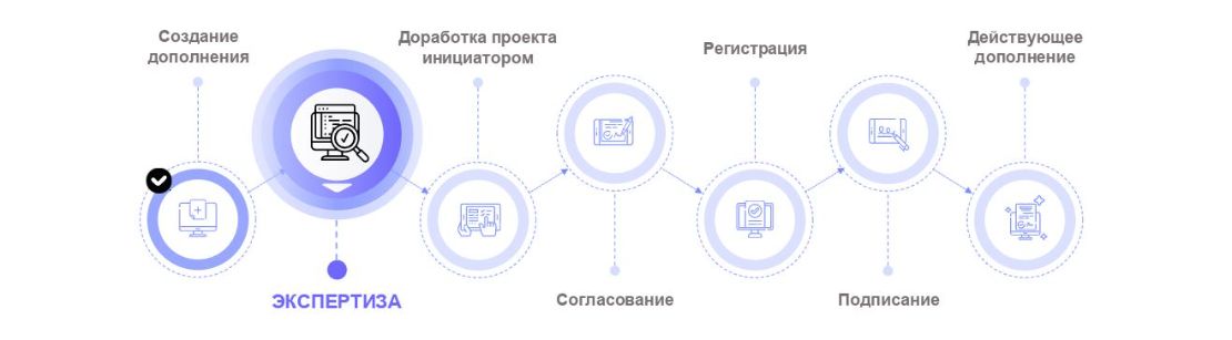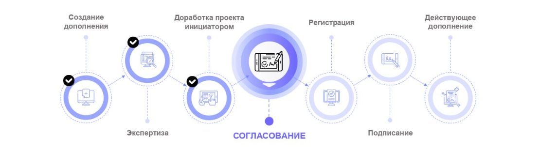 Задача «Согласовать» ставится после этапа «Создание дополнение к договору» или после завершения этапа «Экспертиза дополнения к договору» (при наличие его в процессе).