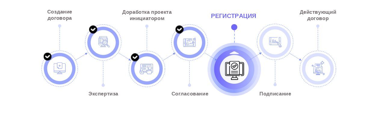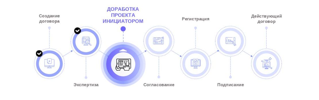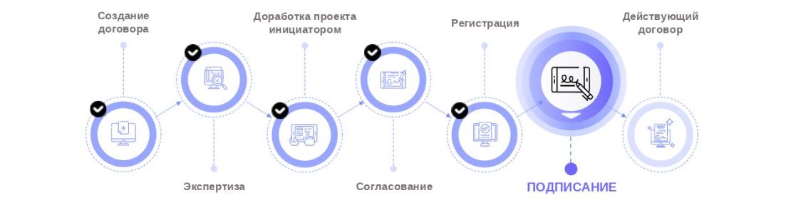 - Договор исполнен – будет запущен процесс перевода договора в статус «Исполнен».