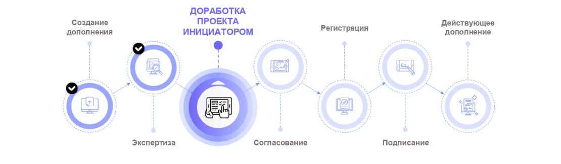 - учесть комментарии при доработке проекта - внести изменения в тексте проекта или загрузить новый файл в редактируемом формате в поле «Новый проект документа».