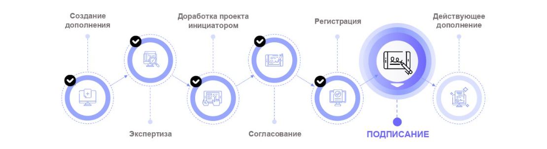ставится после завершения этапа согласования проекта дополнения к договору.
