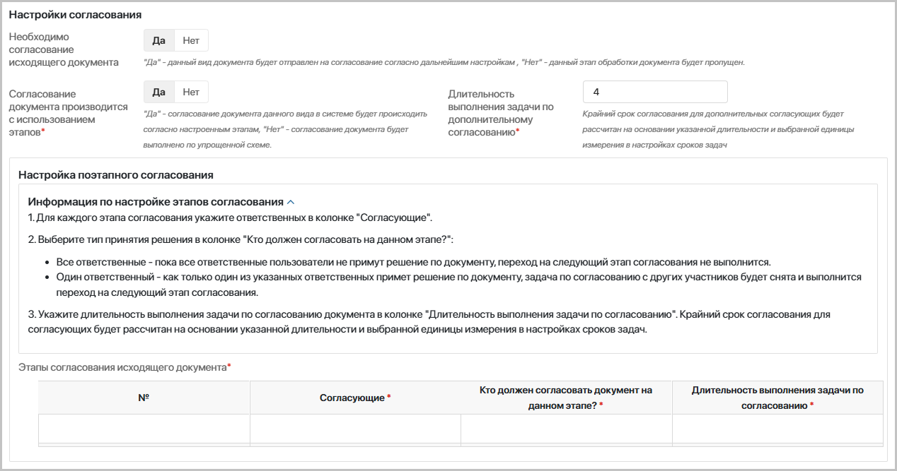 выносится, если видом исходящего документа предусмотрен этап согласования.