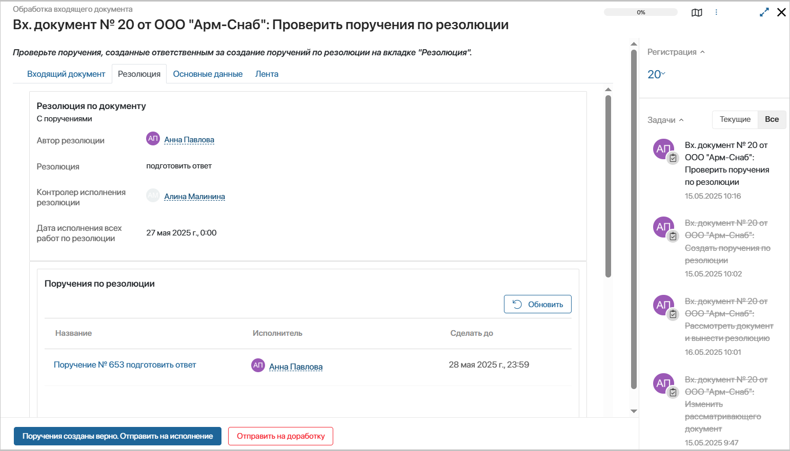 - Рассмотрение входящего документа