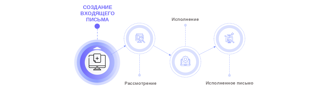 | Создание входящего документа | создавать записи в приложении «Входящие документы», определять вид документа при его создании, в зависимости от настроек вида документа указывать информацию об ответственных по документу | |