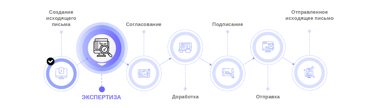| «Экспертиза», «Доработка», «Согласование», «Подписание», «Отправка» | Ответственный за документ