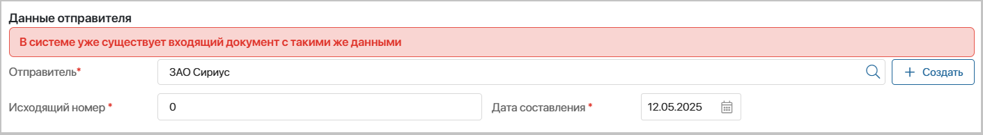 Возможно сохранить дублированный входящий документ – укажите «Да», если допустимо сохранение входящего документа с данными уже существующего документа в системе. При выборе «Нет» пользователь не сможет сохранить документ с дублирующими данными.
