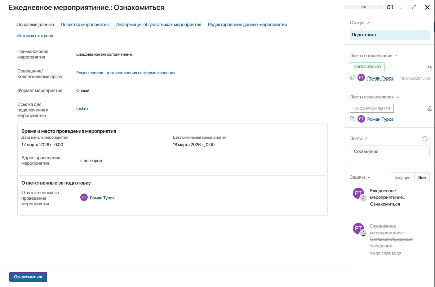 - Согласование мероприятия