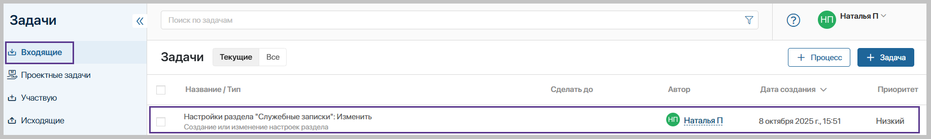 - Задачи, поставленные в рамках процесса согласования и исполнения служебной записки, будут закрыты автоматически.