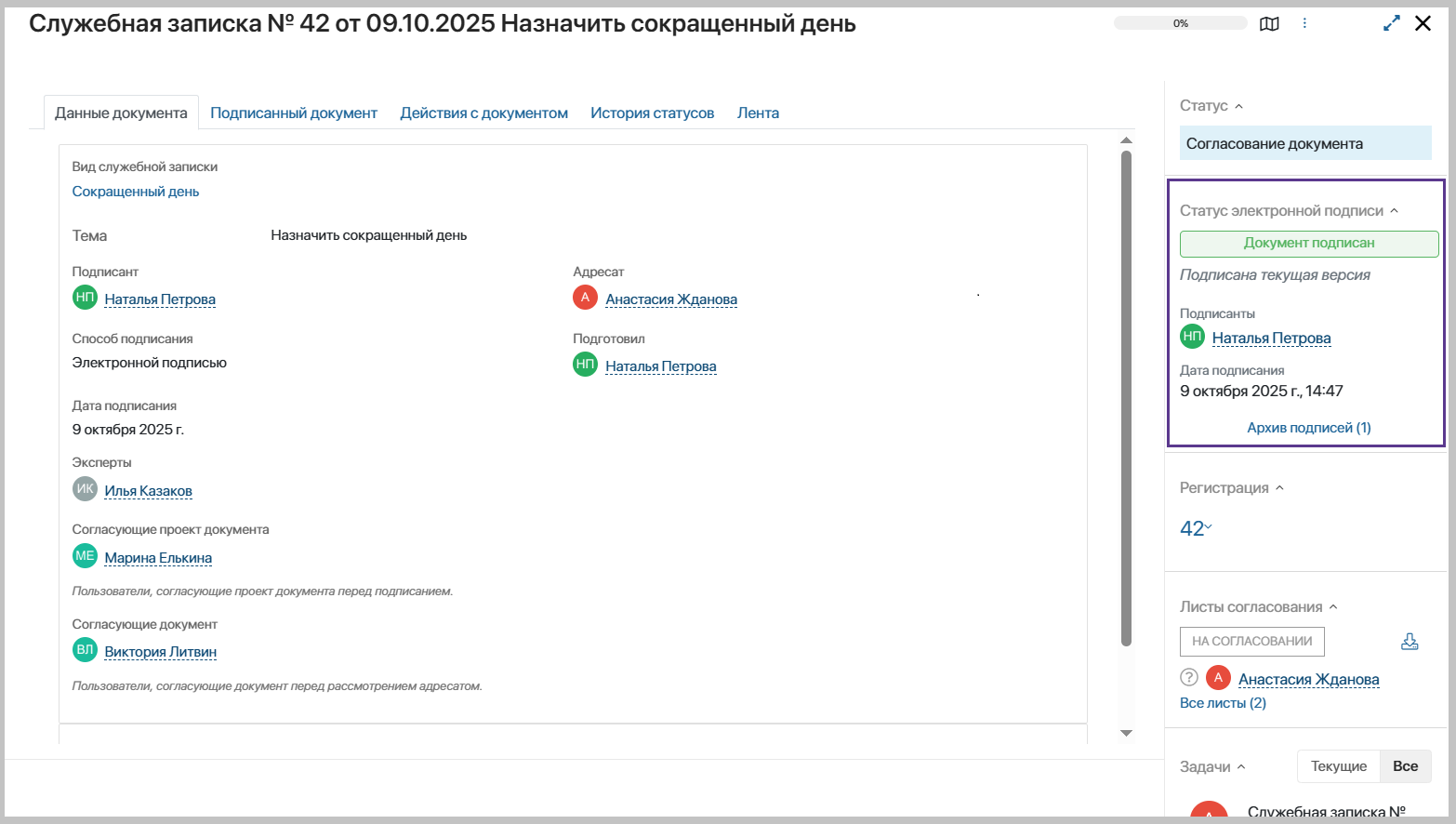 - После подписания – служебные записки будут направлены на регистрацию после подписания.