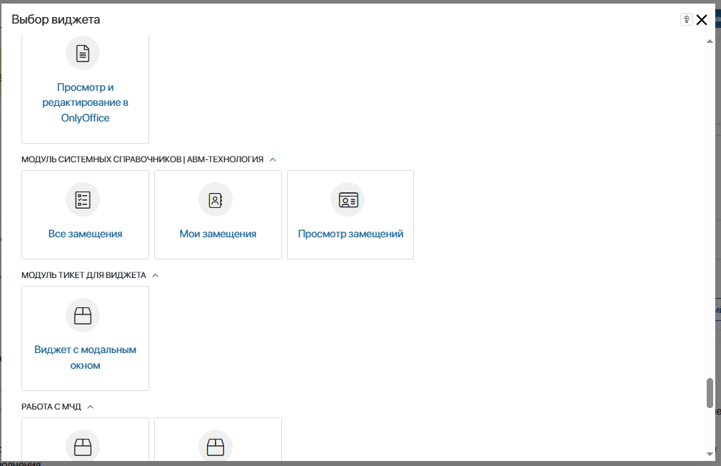 2. Выберите виджет «Мои замещения» из модуля «Модуль системных справочников | АВМ-Технология».