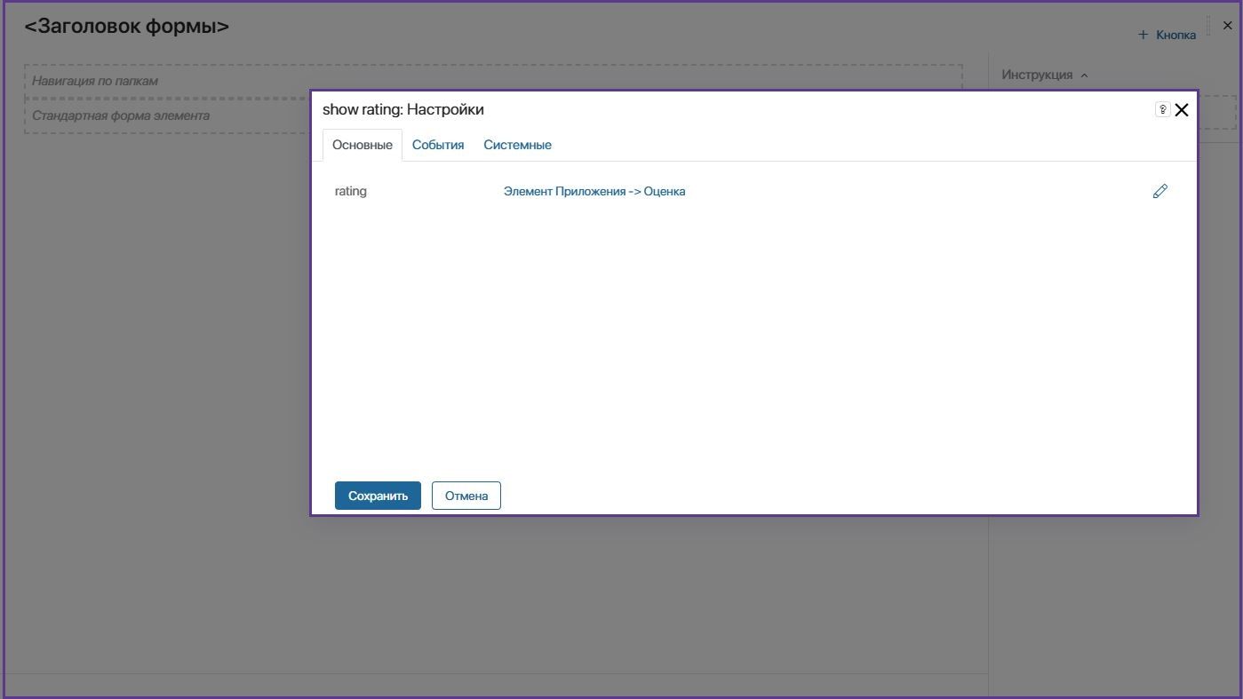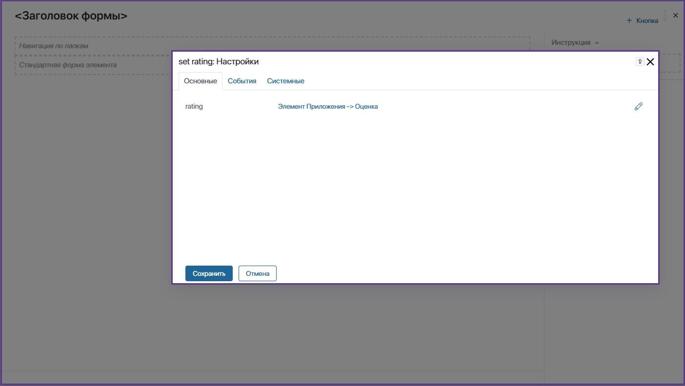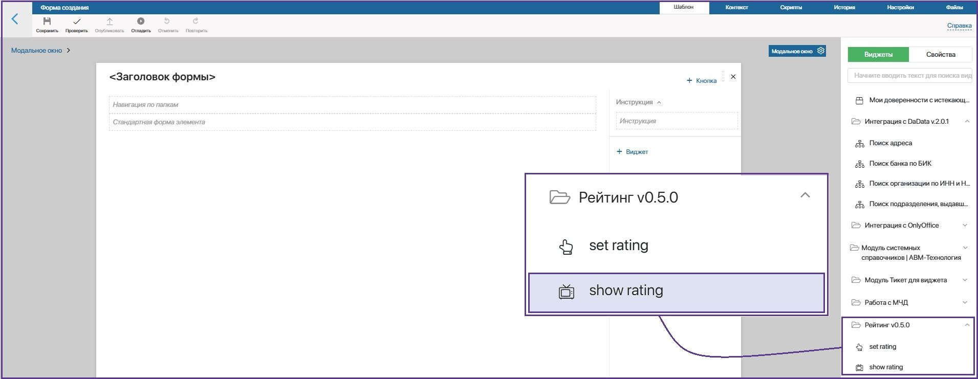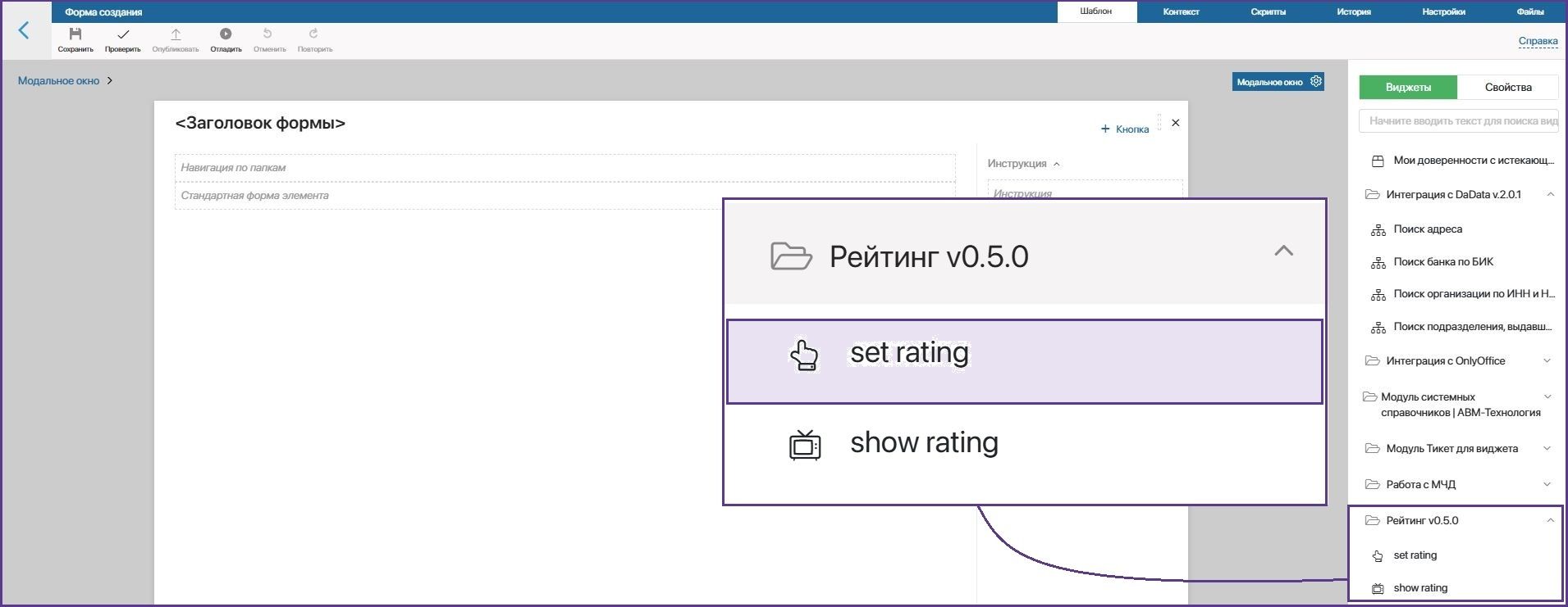 · в списке доступных виджетов выберите «Set rating» и вынесите его на форму,