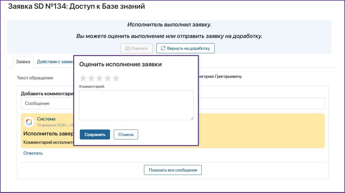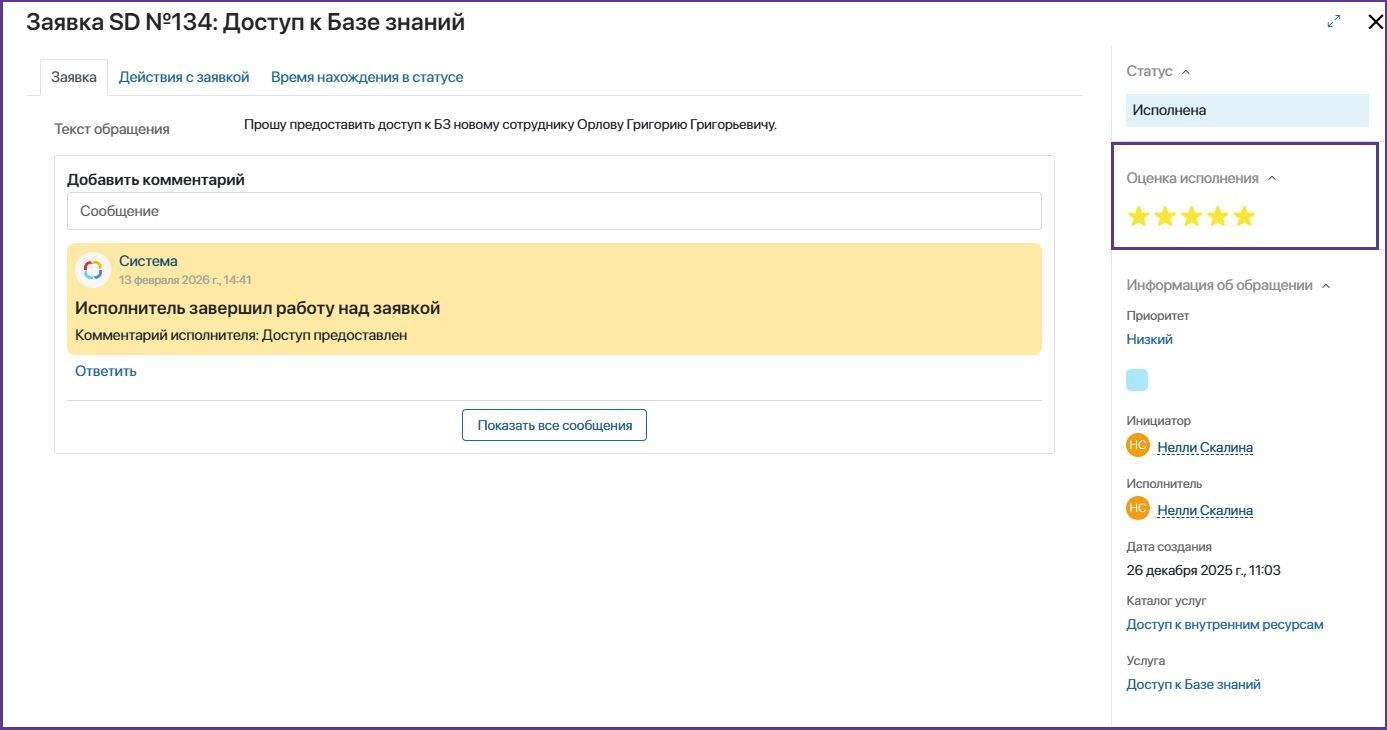 Настроенный виджет на форме просмотра (приложения “Заявки в ТП” решения “Внутренний SD | АВМ – Технология”) выглядит вот так: