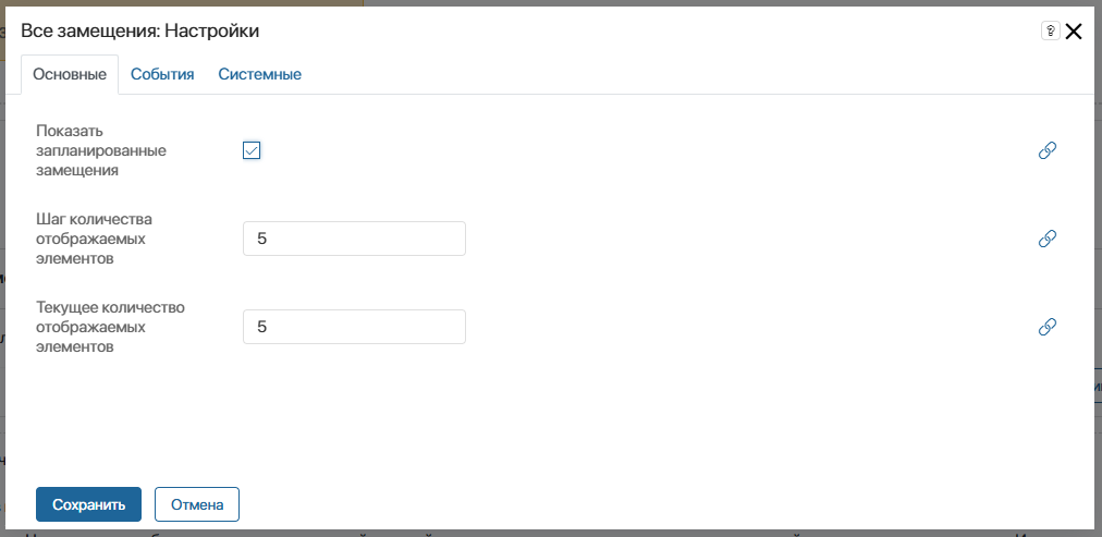 Кнопка «Просмотр замещений» перенаправит пользователя на страницу с замещениями.